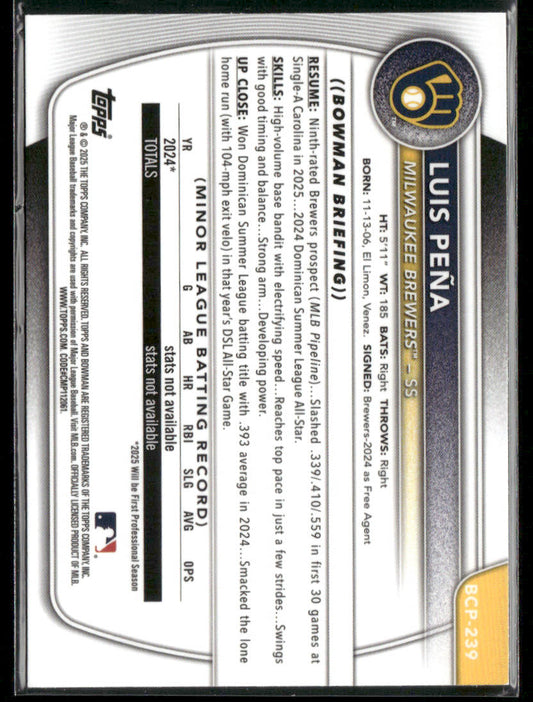 2025 Bowman Chrome Luis Peña #BCP-239 Purple Shimmer Refractor 234/250