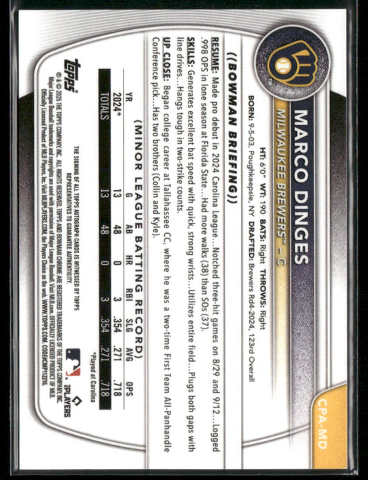 2025 Bowman Chrome Marco Dinges #CPA-MD Mini Diamond 035/100 1st Bowman Auto