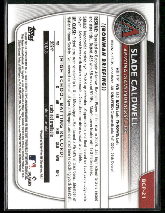 2025 Bowman Slade Caldwell #BCP-21 Fuchsia Mojo Refractor 1st Bowman 153/199