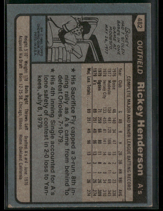 1980 Topps Rickey Henderson #482 RC Rookie EX Condition