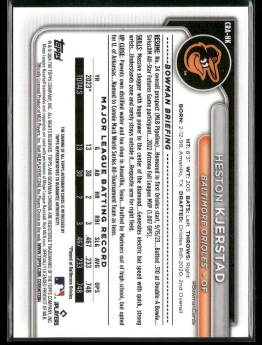 2024 Bowman Chrome Heston Kjerstad #CPA-HK Yellow Refractor RC Rookie Auto 39/75