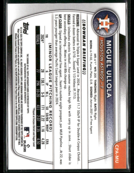 2025 Bowman Chrome Miguel Ullola #CPA-MU Blue Refractor 1st Bowman Auto 003/150