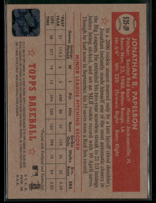 2006 Topps 52 Jonathan Papelbon #52S-JP RC Rookie Auto