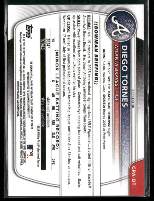 2025 Bowman Chrome Diego Tornes #CPA-DT 1st Bowman Auto Refractor 099/499