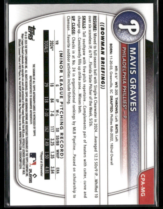 2025 Bowman Chrome Mavis Graves #CPA-MG HTA Choice 078/150 1st Bowman Auto