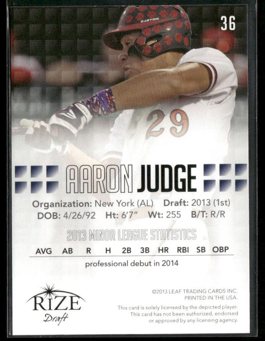 2013 Leaf Rize Draft Aaron Judge #36 Pink RC Rookie /200