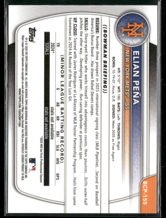2025 Bowman Chrome Elian Peña #BCP-155 Purple Geometric 1st Bowman 099/250