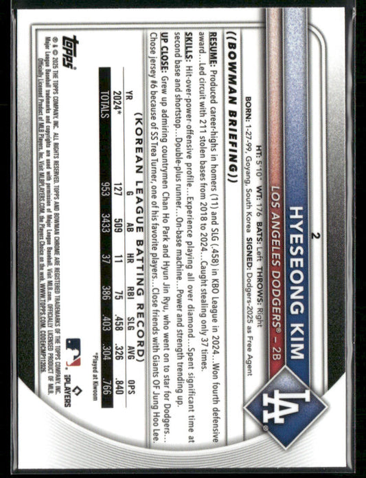 2025 Bowman Chrome Hyeseong Kim #2 Fuchsia Wave Refractor RC Rookie 123/299