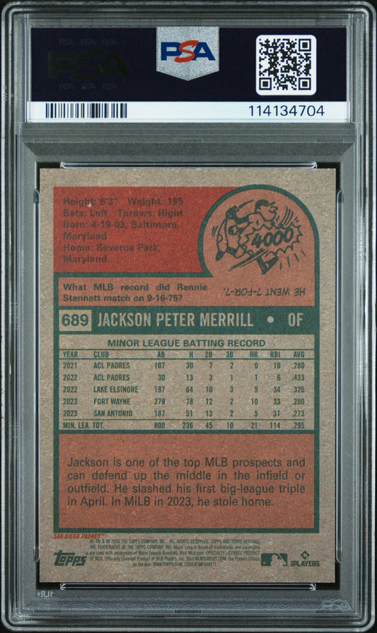 2024 Topps Heritage Jackson Merrill #689 Team Name City Name Swap Rookie PSA 10