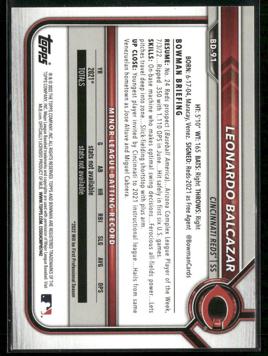 2022 Bowman 1st Edition Leonardo Balcazar #BD-91 Red Foil 1st Edition 3/5