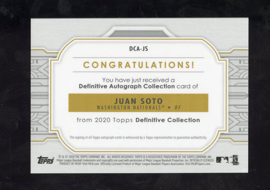2020 Topps Definitive Juan Soto #DCA-JS "Keep It Tight, Keep It Right" Auto /35