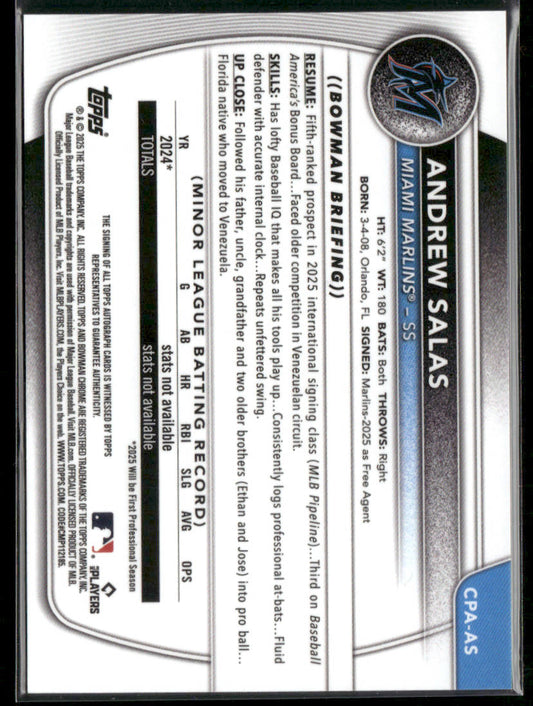 2025 Bowman Chrome Andrew Salas #CPA-AS Mini Diamond 1st Bowman Auto 004/100