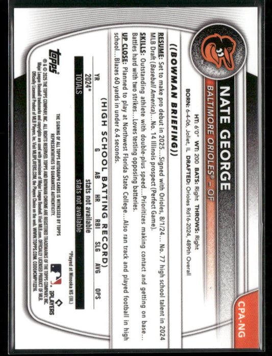 2025 Bowman Chrome Nate George #CPA-NG 1st Bowman Auto