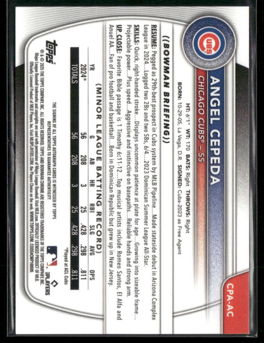 2025 Bowman Chrome Angel Cepeda #CPA-AC 1st Bowman Auto 150/299 (BT)
