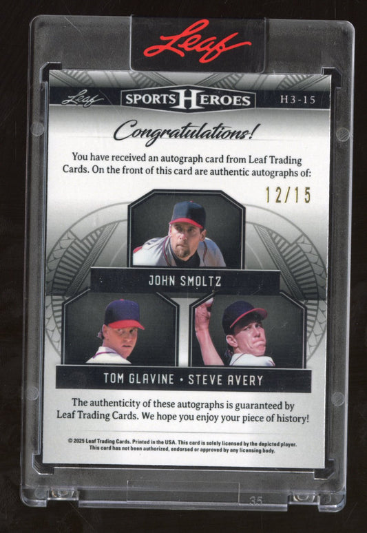 2025 Leaf Sports Heroes John Smoltz Tom Glavine Steve Avery Ice Auto 12/15