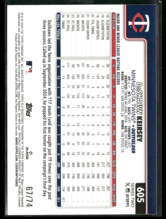 2025 Topps Series 2 DaShawn Keirsey #605 Black 67/74 RC Rookie