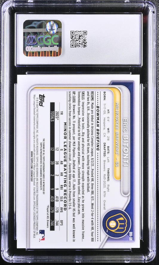 2024 Bowman Mega Box Eric Bitonti #BMA-EBI Purple Autographs CGC 10