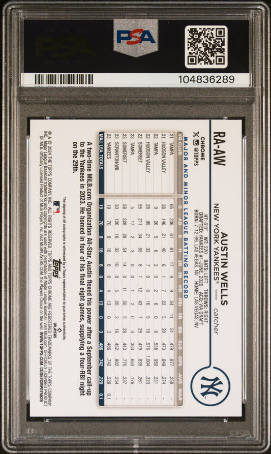 2024 Topps Chrome Austin Wells #RA-AW Purple Speckle RC Rookie Auto PSA 10