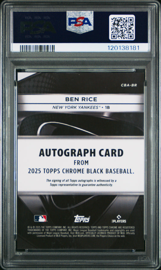 2025 Topps Chrome Black Auto Ben Rice #CBA-BR Blue RC Rookie 089/150 PSA 9