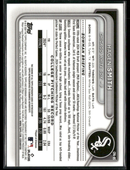 2024 Bowman Draft Hagen Smith #CPA-HS Chrome Auto