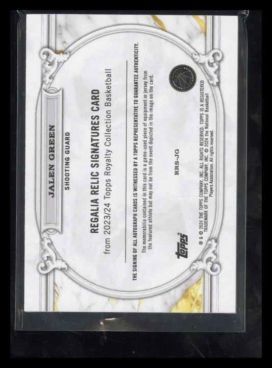 2023-24 Topps Royalty Collection Jalen Green #RSR-JG Blue Dual Patch Auto 06/15