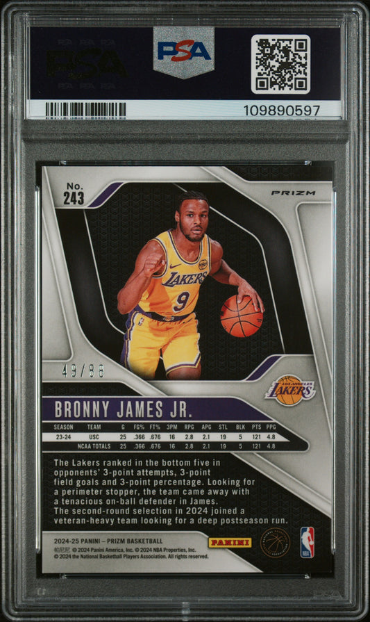 2024-25 Panini Prizm Bronny James JR. #243 Red Choice Prizm 49/88 PSA 9