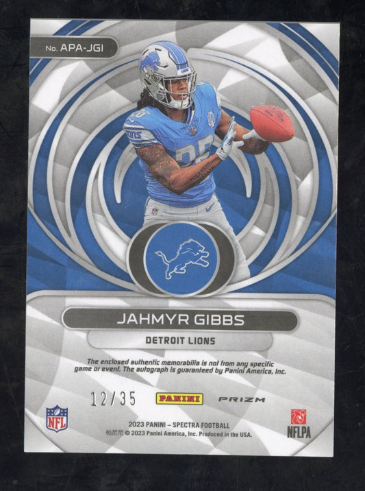 2023 Panini Spectra Jahmyr Gibbs Neon Green Aspiring Rookie Patch Auto 12/35