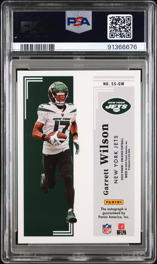 2022 Panini Encased Garrett Wilson #SS-GW Scripted Auto Emerald 02/10 PSA 9