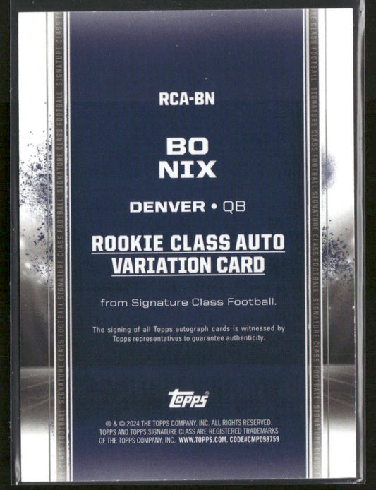 2024 Topps Signature Class Bo Nix #RCA-BN RC Rookie Class Auto Variation