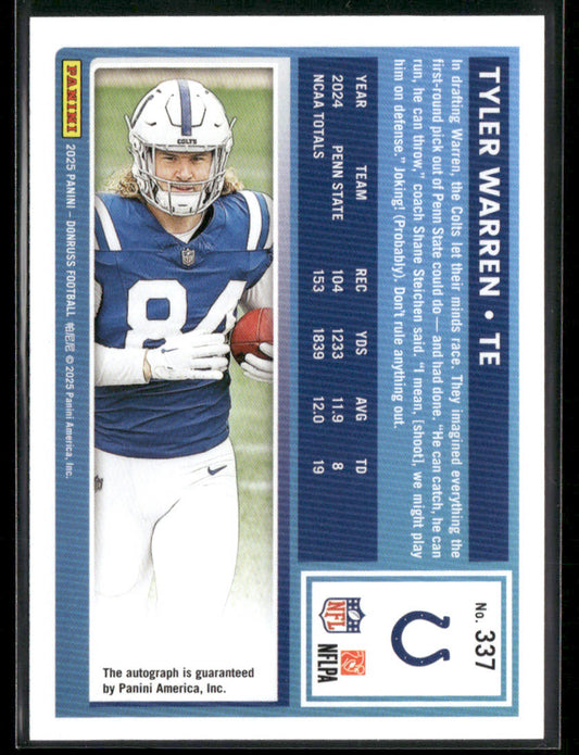 2025 Panini Donruss Tyler Warren #337 Gold Rated Rookie Auto 22/25