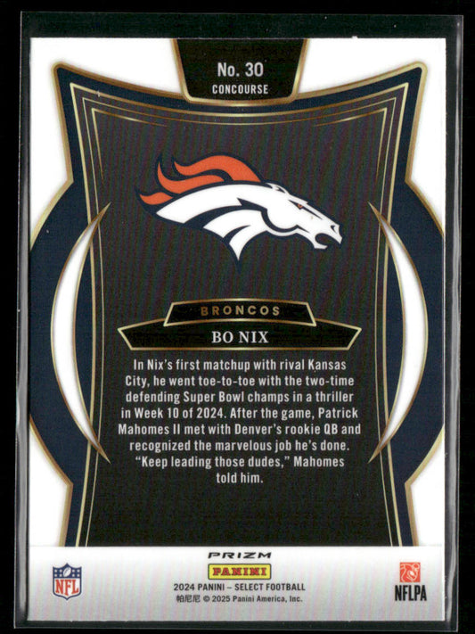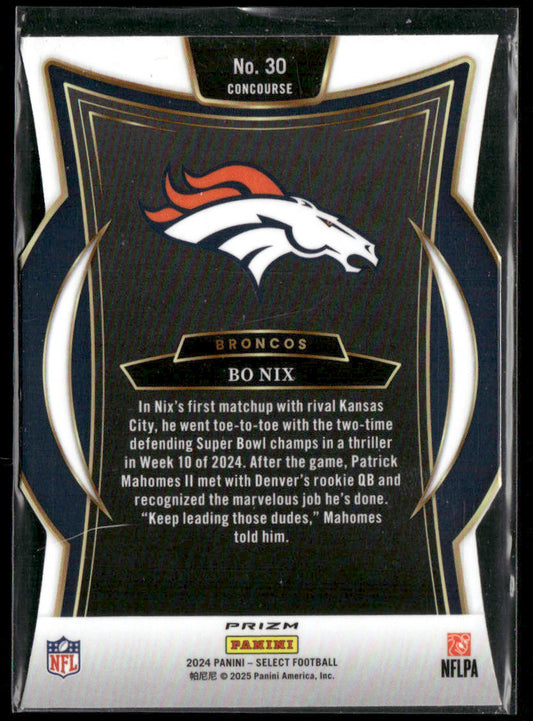 2024 Panini Select Bo Nix #30 Silver Prizm Die-Cut RC Rookie