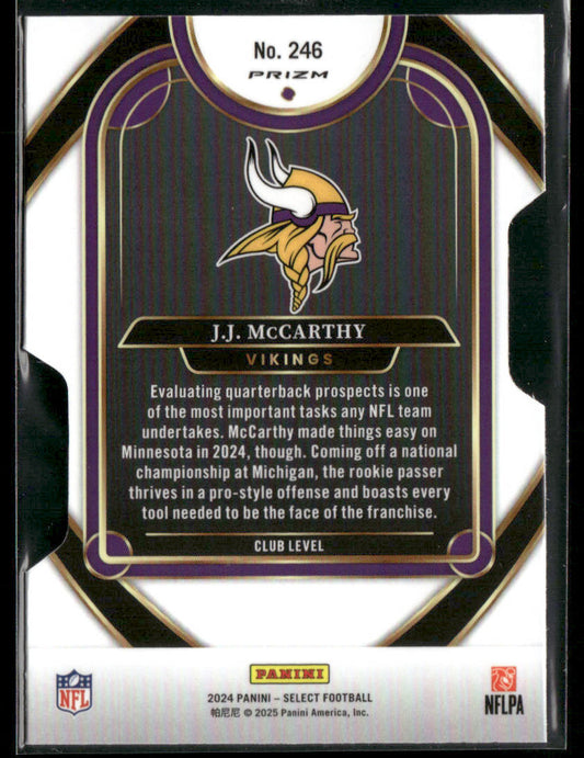2024 Panini Select J.J. McCarthy #246 Silver Prizm Die-Cut RC Rookie