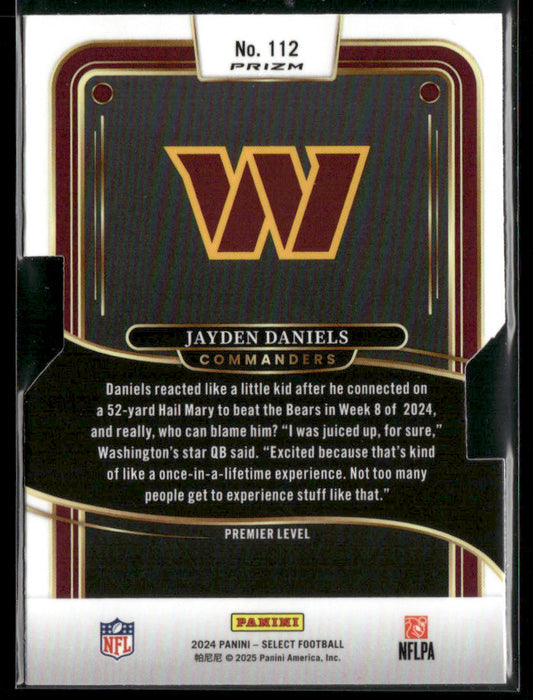 2024 Panini Select Jayden Daniels #112 Silver Prizm Die-Cut RC Rookie