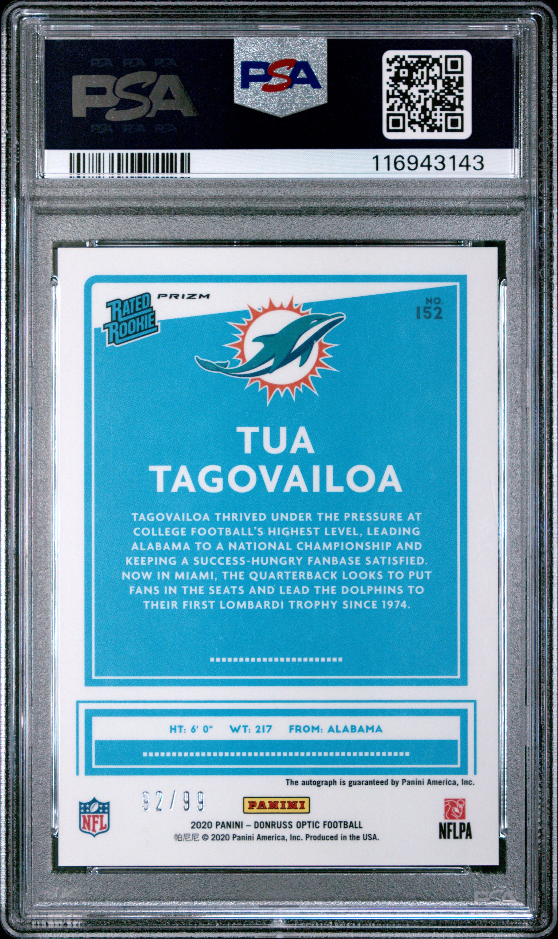 2020 Panini Donruss Optic Tua Tagovailoa #152 Auto Holo /99 Rated Rookie PSA 10