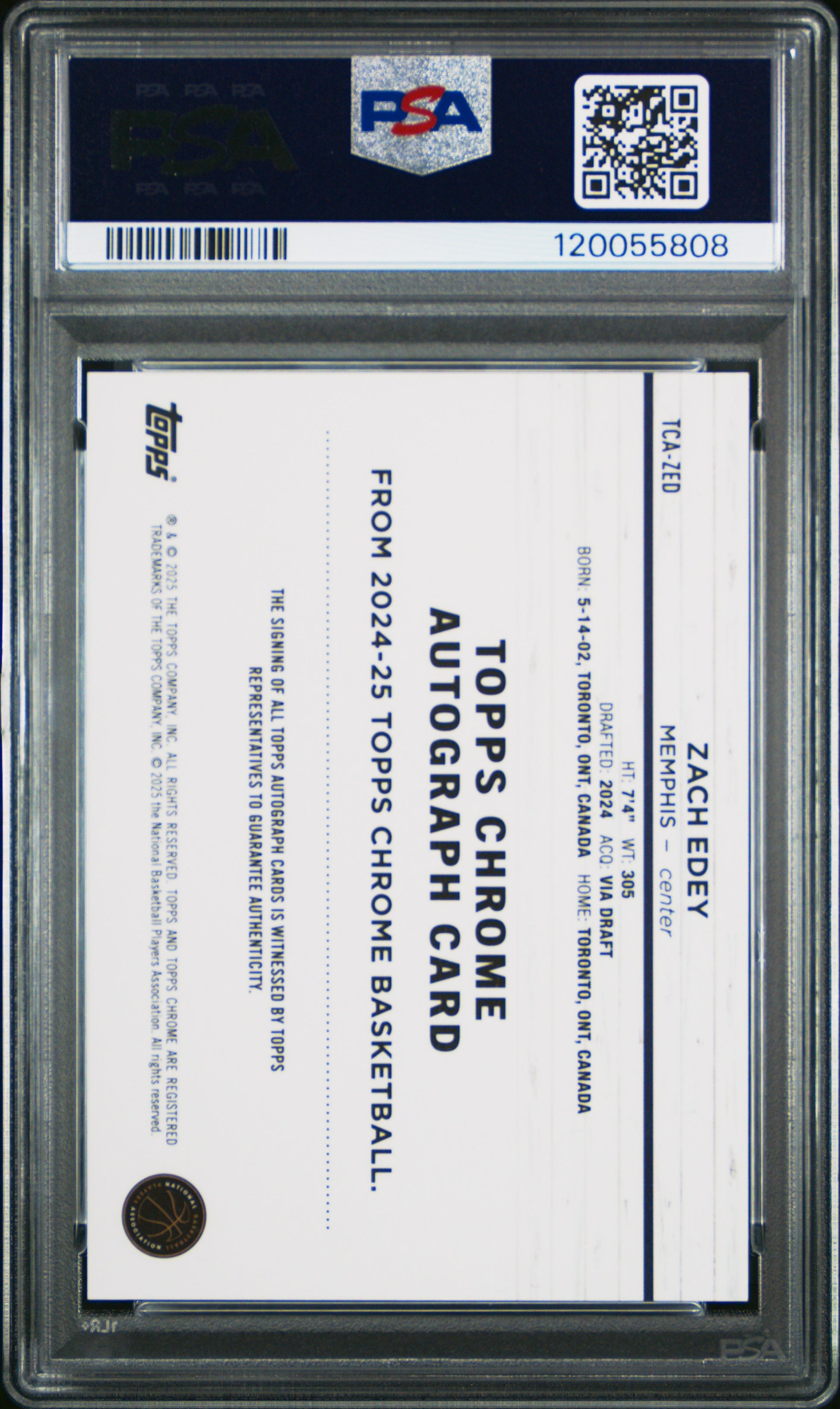 2024-25 Topps Chrome Zach Edey #TCA-ZED Black Refractor Rookie Auto 01/10 PSA 9
